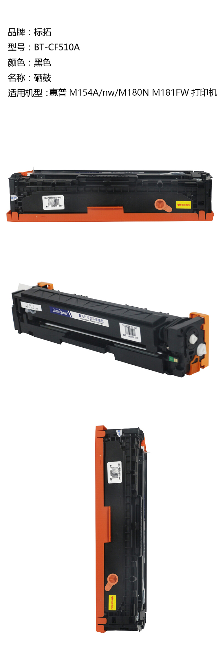 > 办公耗材 复印纸 硒鼓 > 打印耗材 > 硒鼓 > 标拓 Biaotop BT-CF510A 硒鼓 黑色 适用于惠普M154A nw M180N M181FW打印机 计价单位:支| 产品名称 : | 标拓 Biaotop BT-CF510A 硒鼓 黑色 适用于惠普M154A nw M180N M181FW打印机 计价单位:支 |