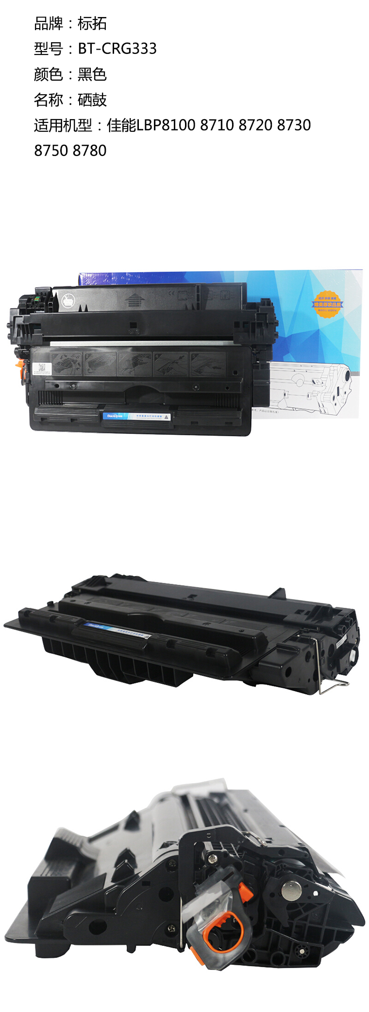 > 办公耗材 复印纸 硒鼓 > 打印耗材 > 硒鼓 > 标拓 Biaotop BT-CRG333 硒鼓 黑色 适用佳能LBP8100 8710 8720 8730 8750 8780 计价单位:支| 产品名称 : | 标拓 Biaotop BT-CRG333 硒鼓 黑色 适用佳能LBP8100 8710 8720 8730 8750 8780 计价单位:支 |