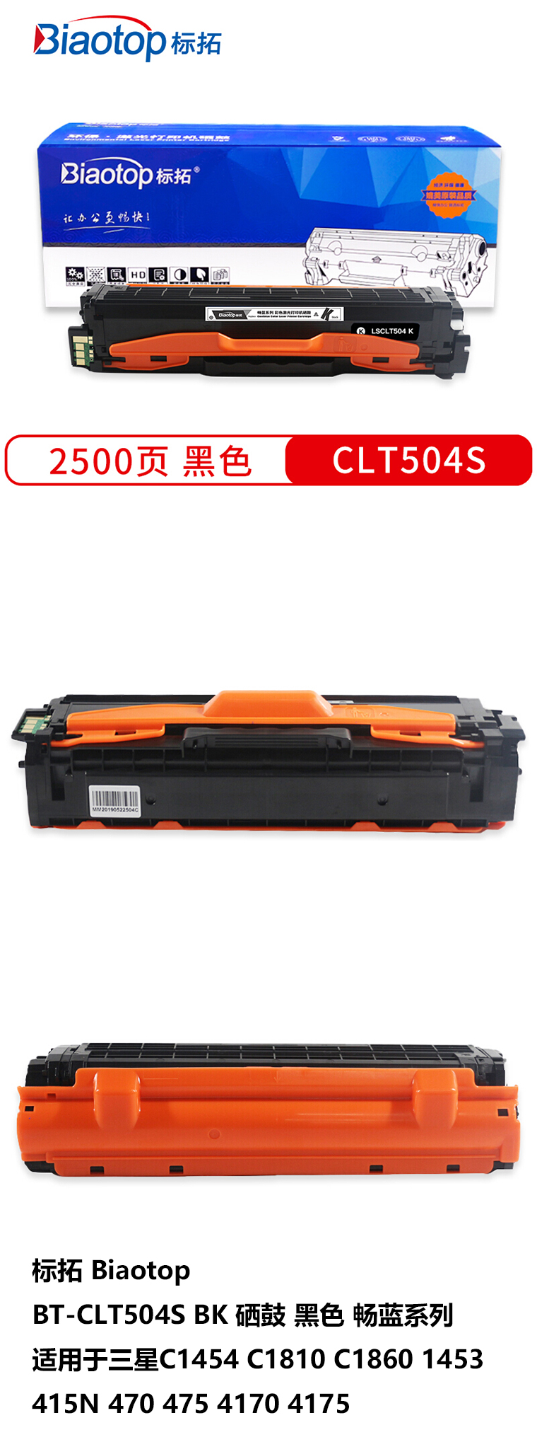 产品名称 : 标拓 Biaotop BT-CLT504S BK 硒鼓 黑色 畅蓝系列 适用于三星C1454 C1810 C1860 1453 415N 470 475 4170 4175 计价单位:支