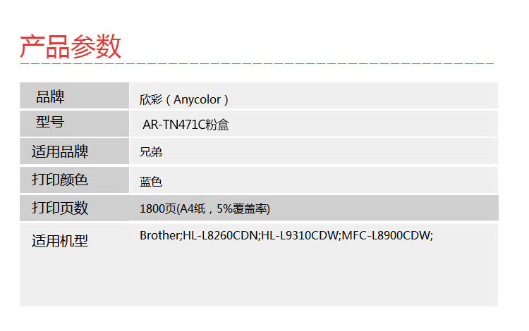 | 产品名称 : | 欣彩(Anycolor)TN-471粉盒 专业版 AR-TN471C |