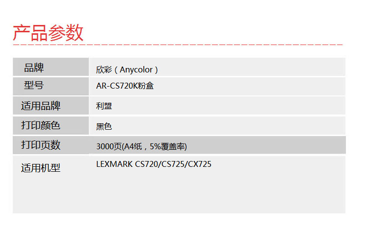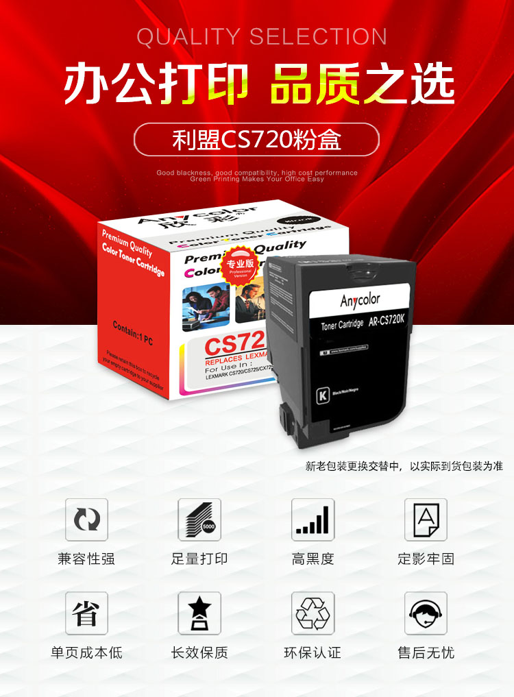 | 产品名称 : | 欣彩(Anycolor)74C30K0碳粉盒 专业版 AR-CS720K |