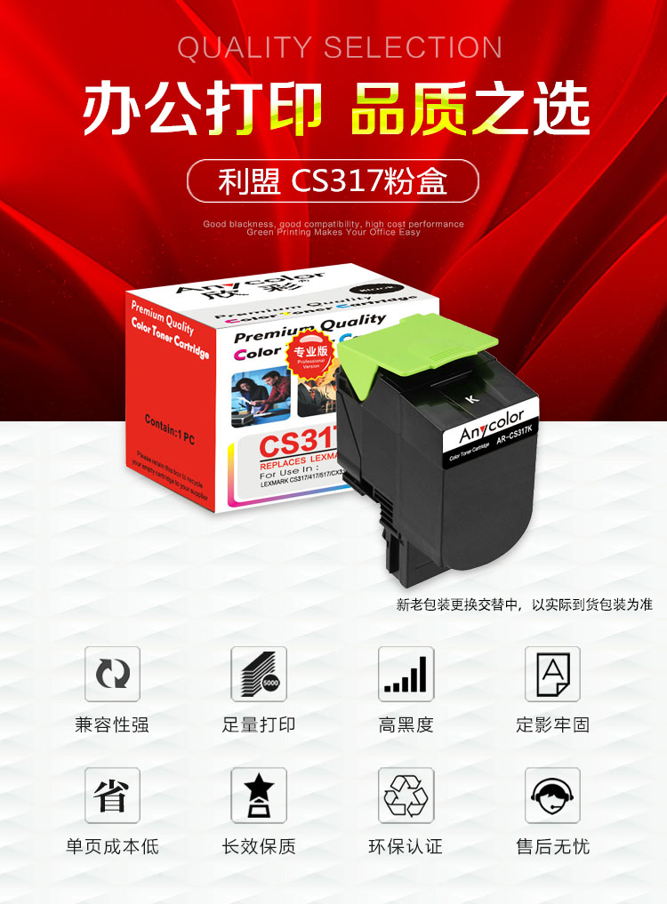 | 产品名称 : | 欣彩(Anycolor)71B10K0碳粉盒 专业版 AR-CS317K黑色 |