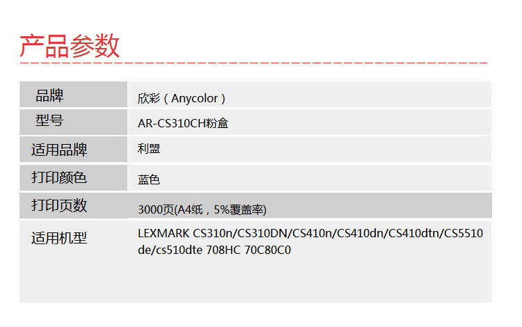| 产品名称 : | 欣彩(Anycolor)CS310 粉盒(专业版)AR-CS310CH |