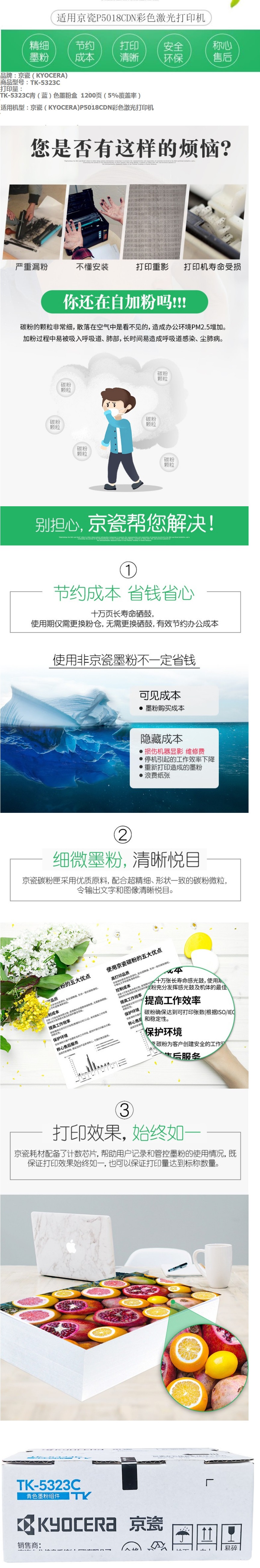 | 产品名称 : | 京瓷 Kyocera TK-5323C 青色墨粉 |