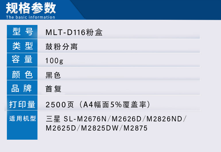 > 办公耗材 复印纸 硒鼓 > 打印耗材 > 硒鼓 > 首复MLT-D116L/MLT-D116S 粉盒 墨粉盒适用三星SL-M2676N M2626D M2826ND M2625D M2825DW M2875| 产品名称 : | 首复MLT-D116L/MLT-D116S 粉盒 墨粉盒适用三星SL-M2676N M2626D M2826ND M2625D M2825DW M2875 |