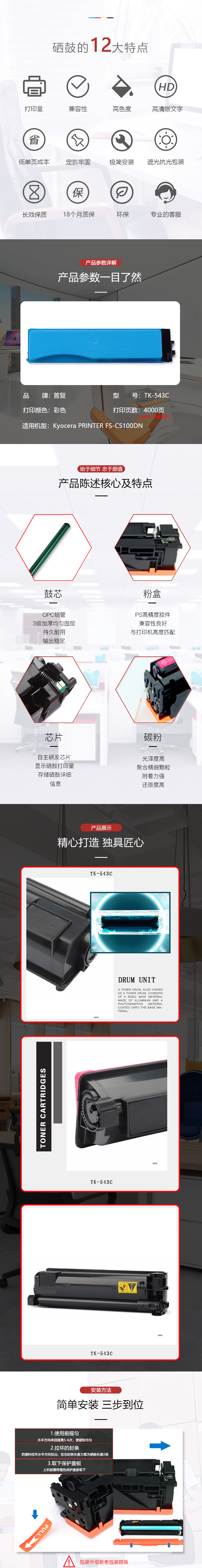 | 产品名称 : | 首复 TK-543C 适用京瓷C5100DN Kyocera FS-C5100硒鼓蓝色 |