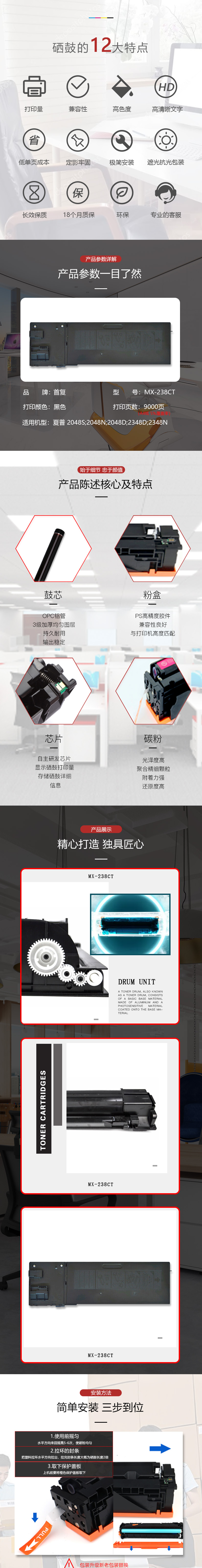 | 产品名称 : | 首复 MX238CT 适用夏普sharp 2048S 2048N 2048D 2348D 2348N 复印机 |