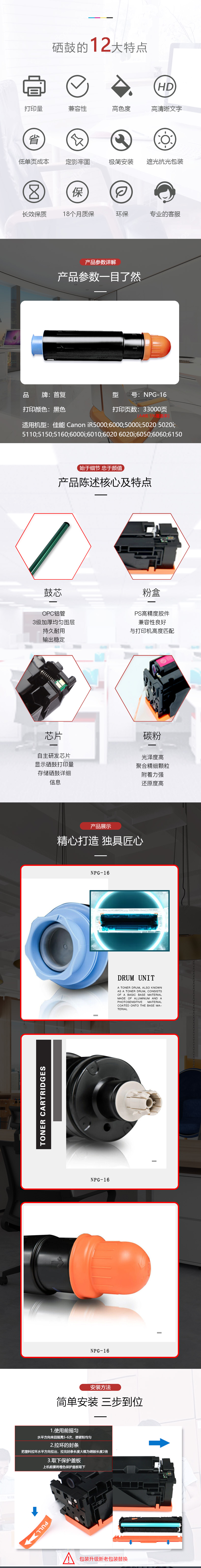 | 产品名称 : | 首复 NPG-16 粉盒 适用佳能 GPR-4 EXV1 IR 5000I 5020I 5110 NPG-16 |