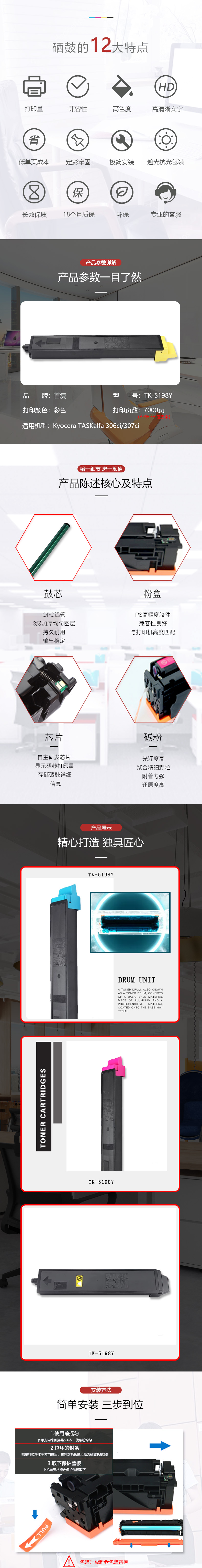 | 产品名称 : | 首复 TK-5198Y 黄色粉盒 适用京瓷Kyocera TASKalfa 306ci 307ci打印机复印机 |