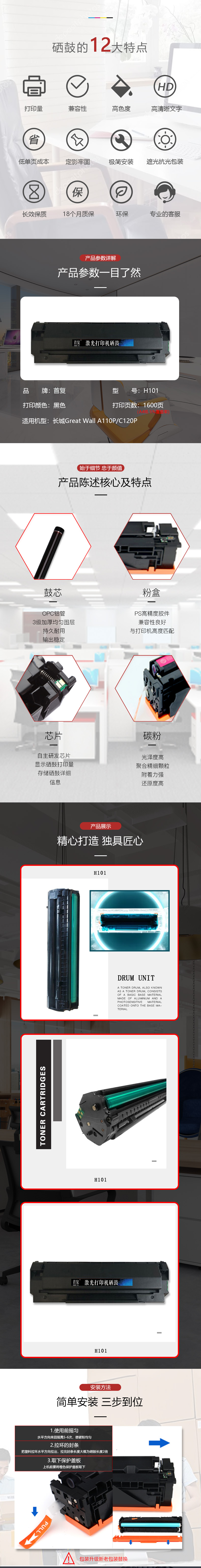 | 产品名称 : | 首复 H101 硒鼓 适用长城A110P粉盒硒鼓C120P粉盒硒鼓含芯片上机即用/1600页 |