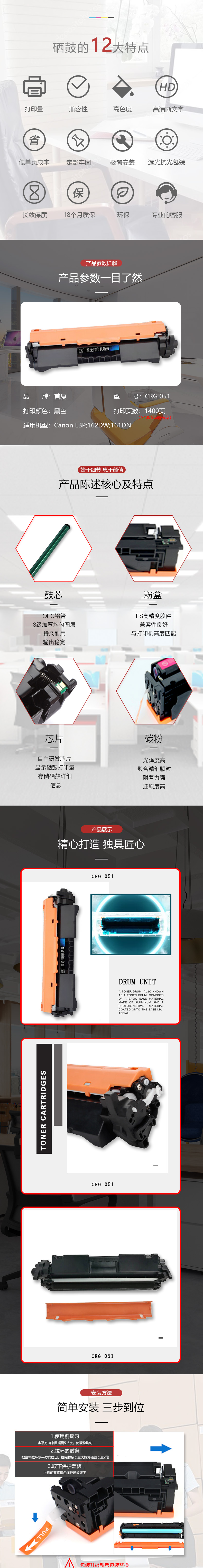 | 产品名称 : | 首复 CRG 051 粉盒(专业版)AR-CRG051 适用佳能Canon LBP 162DW 161DN 打印机 |