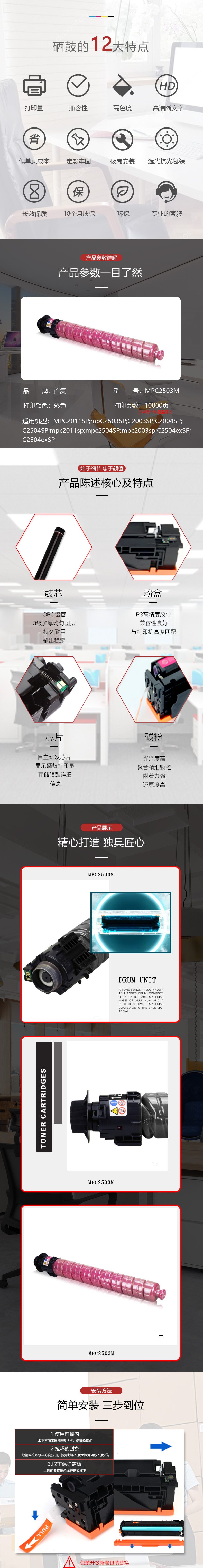 | 产品名称 : | 首复 MPC2503M 硒鼓 专业版 大容量 适用理光MPC2003SP 2504 2011SP C2004复印机 |