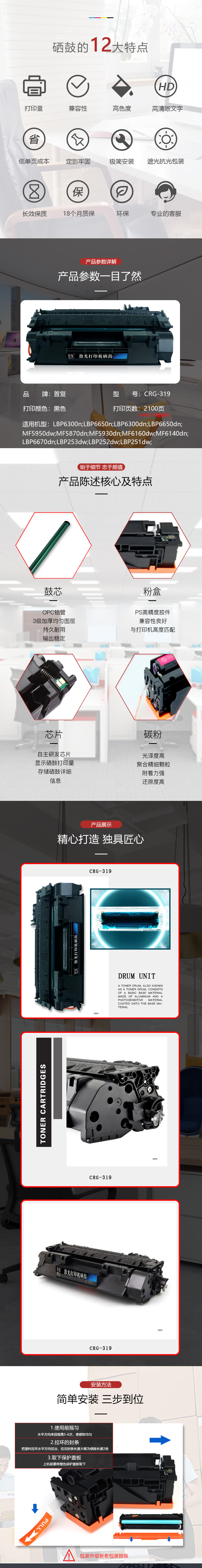 | 产品名称 : | 首复 CRG-319 硒鼓(专业版)AR-319黑色 适用佳能LBP6300dn 6300n 6650n 6670dn |