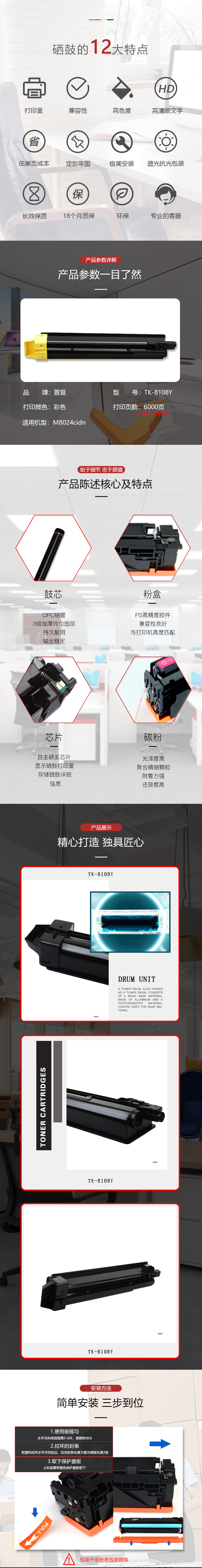 | 产品名称 : | 首复 TK-8108Y 黄色硒鼓 适用京瓷 M8024cidn |