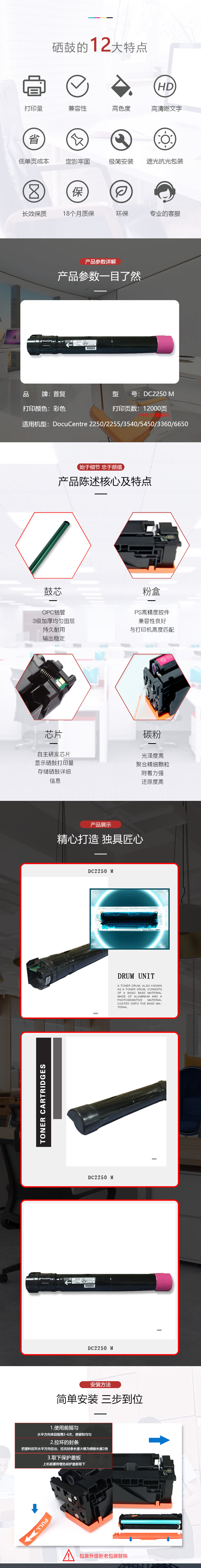 | 产品名称 : | 首复 DC2250M 粉盒 红色 适用施乐C2255 C3540 C5450 C3360 |
