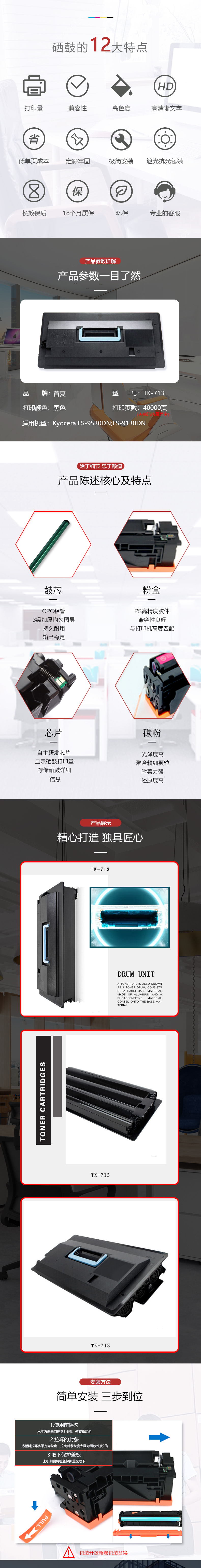 | 产品名称 : | 首复 TK-713 适用京瓷Kyocera FS-9530DN FS-9130DN打印机复印机 |