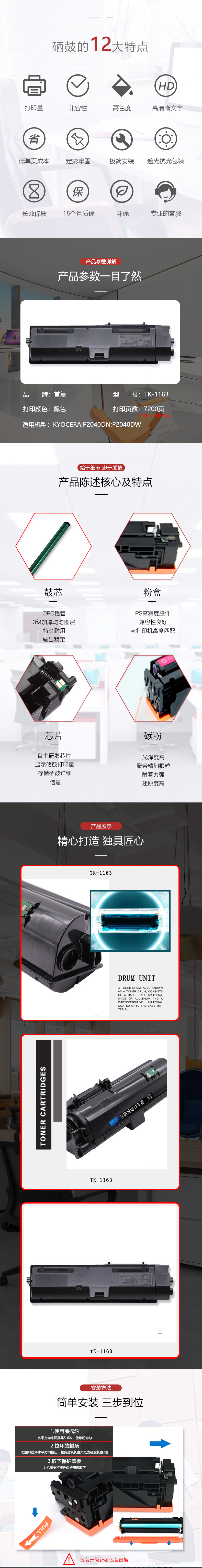 | 产品名称 : | 首复 TK-1163 专业版 适用京瓷KYOCERA P2040DN P2040DW 1TO2RYOKSO |