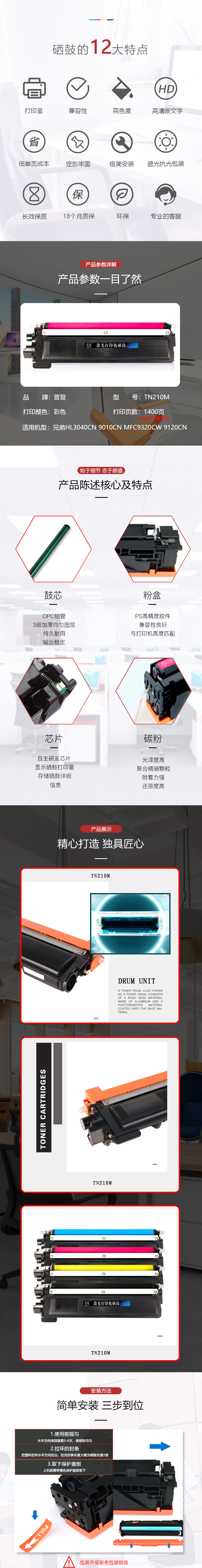 | 适用机型: | 兄弟HL3040CN 9010CN MFC9320CW 9120CN硒鼓 TN210/270 |