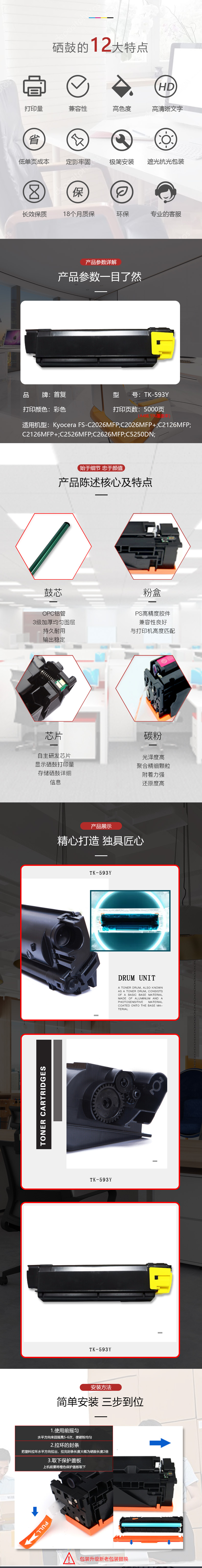 | 产品名称 : | 首复 TK-593Y 适用京瓷Kyocera FS-C2126MFP C2526 C2626 C5250DN墨粉盒 |