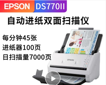 | 产品名称 : | 爱普生(epson)DS-770II扫描仪馈纸式A4彩色文档高速自动连续双面文件图片PDF合同 DS770II(每分钟45张) |