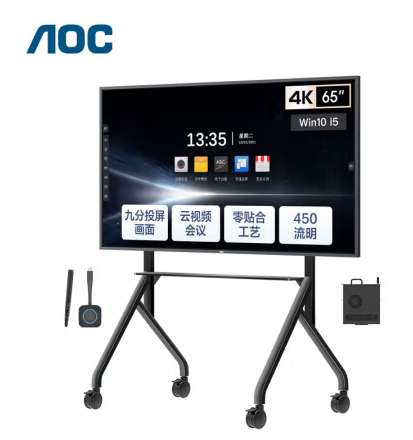 | 产品名称 : | AOC 65英寸4K智能会议平板电视触屏视频会议一体机多媒体教学电子白板智慧屏65T32F+推车+双系统(两件套) |