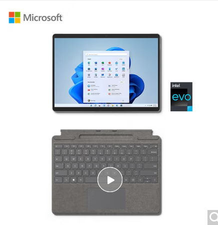 产品名称 : 微软Surface Pro 8 二合一平板电脑 i5 8G+256G 亮铂金+亮铂金键盘盖 13英寸高刷触控屏 轻薄笔记本