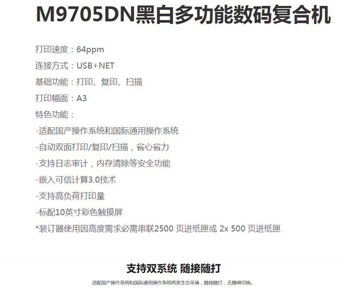 | 产品名称 : | 奔图(PANTUM)M9705DN黑白多功能A3数码复合机 |