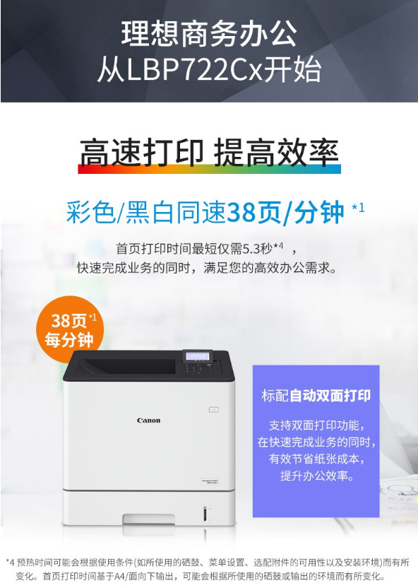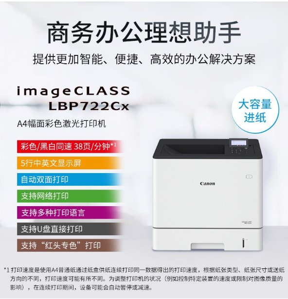 | 产品名称 : | 佳能(Canon)LBP722Cx A4幅面彩色激光单功能打印机 |