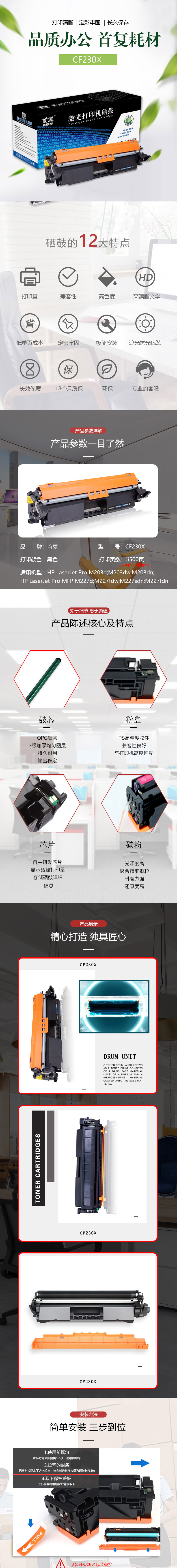 | 产品名称 : | 首复CF230X适用惠普HP 132a/ M203d/ M203dw/ M227 |