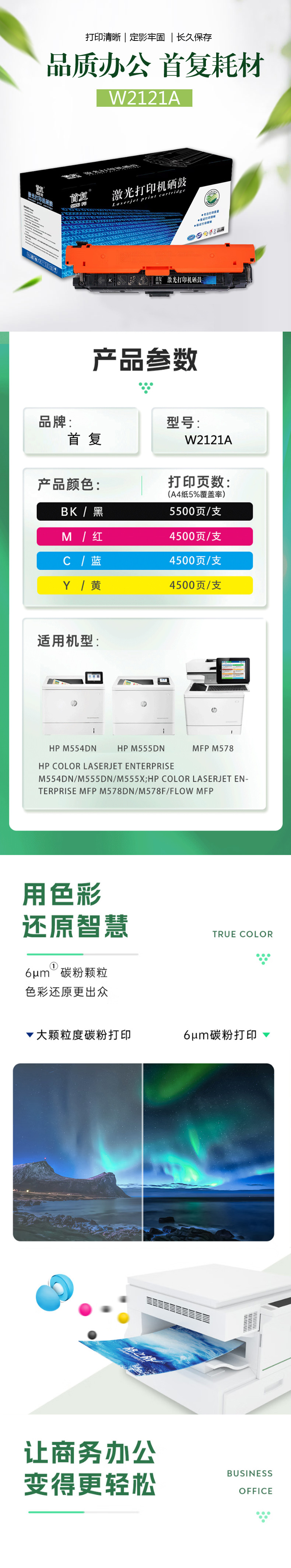 | 适用机型: | 适用惠普HP M554dn碳粉盒M555dn M555X彩色打印机墨盒MFP M578 212A带芯片硒鼓青色 |