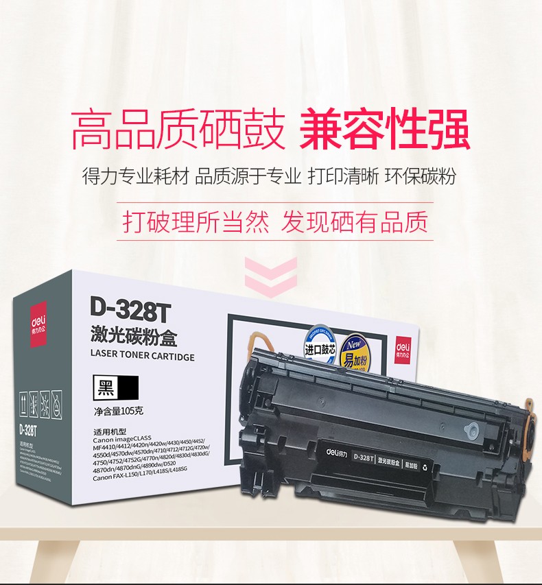 产品名称 : 得力(deli)D-328硒鼓碳粉盒适用于佳能MF4712 4770 4752 4890 4870 4750 D-328