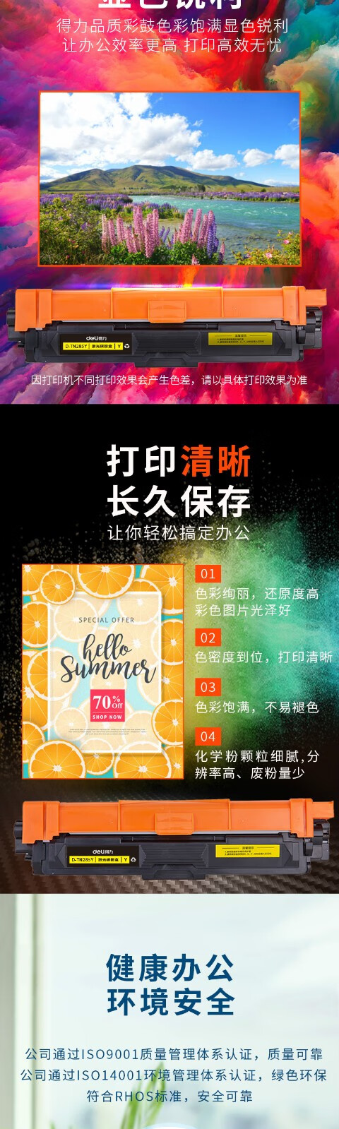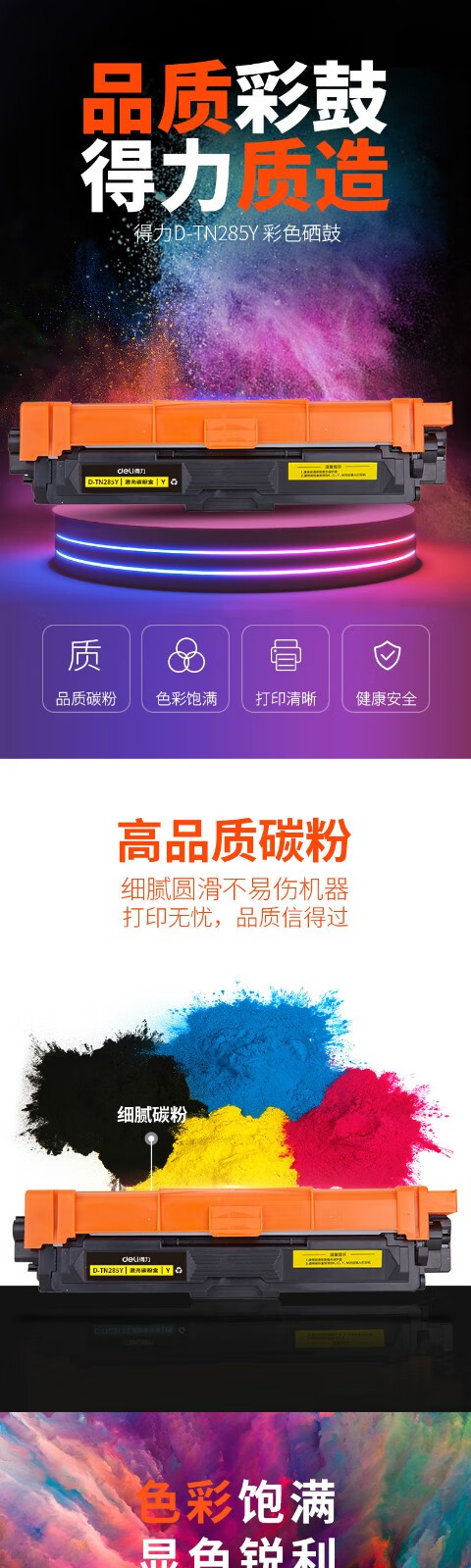 | 产品名称 : | 得力(deli)D-TN285Y彩色激光打印机黄色墨粉仓适用兄弟3150/9020/9140 黄色 |