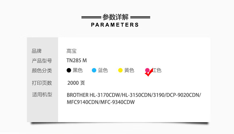 产品名称 : 高宝 COBOL TN-285 M 粉盒 红色 适用兄弟HL-3170CDW/HL-3150CDN/3190/DCP-9020CDN/MFC9140CDN/MFC-9340CDW