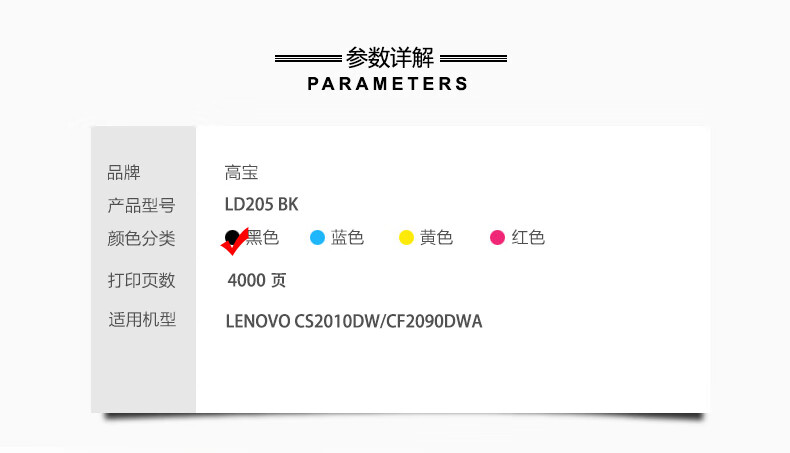 | 产品名称 : | 高宝LD205硒鼓粉盒黑色适用联想CS2010DW CF2090DWA打印机墨盒 |