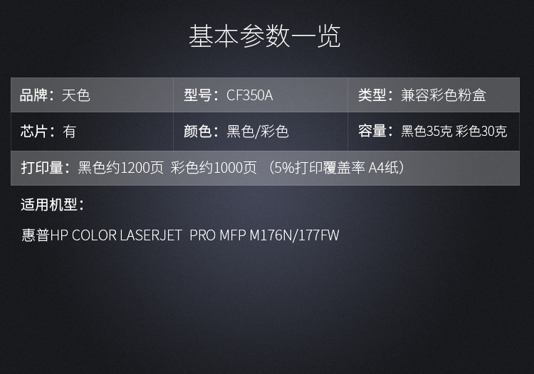 > 办公耗材 复印纸 硒鼓 > 打印耗材 > 硒鼓 > 天色适用惠普HP LaserJet M176n/ M177fw粉盒CF350A墨盒130A CE314A成像鼓-10000页| 产品名称 : | 天色适用惠普HP LaserJet M176n/ M177fw粉盒CF350A墨盒130A CE314A成像鼓-10000页 |