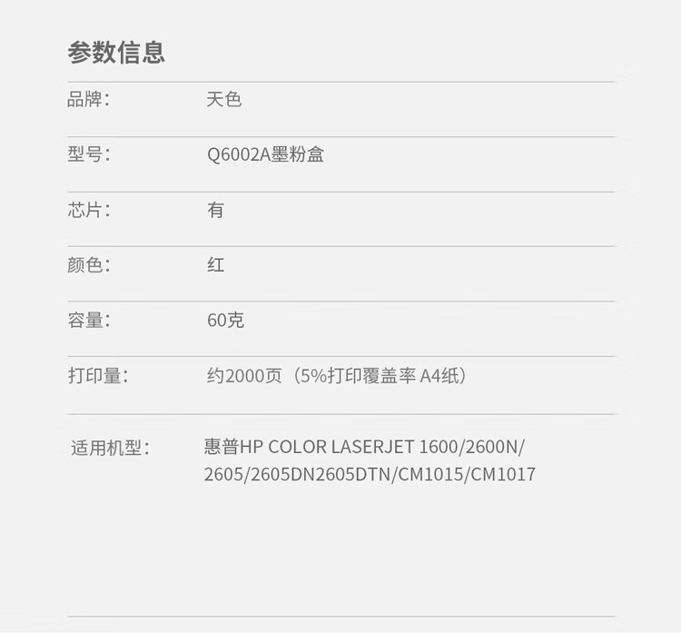 > 办公耗材 复印纸 硒鼓 > 打印耗材 > 硒鼓 > 天色 硒鼓 Q6000/1/2/3A 洋红色M (适用于HPColorLaserJet1600/2600n/2605/2605dn)阳光旗舰版 Z| 产品名称 : | 天色 硒鼓 Q6000/1/2/3A 洋红色M (适用于HPColorLaserJet1600/2600n/2605/2605dn)阳光旗舰版 Z |