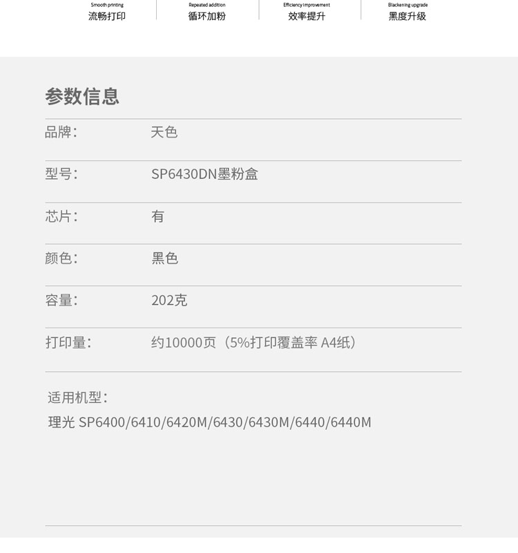 > 办公耗材 复印纸 硒鼓 > 打印耗材 > 硒鼓 > 天色 硒鼓 兼容理光SP6430 (适用于 Ricoh sp6400/6410/6420m/6430/6430m)阳光旗舰版| 产品名称 : | 天色 硒鼓 兼容理光SP6430 (适用于 Ricoh sp6400/6410/6420m/6430/6430m)阳光旗舰版 |