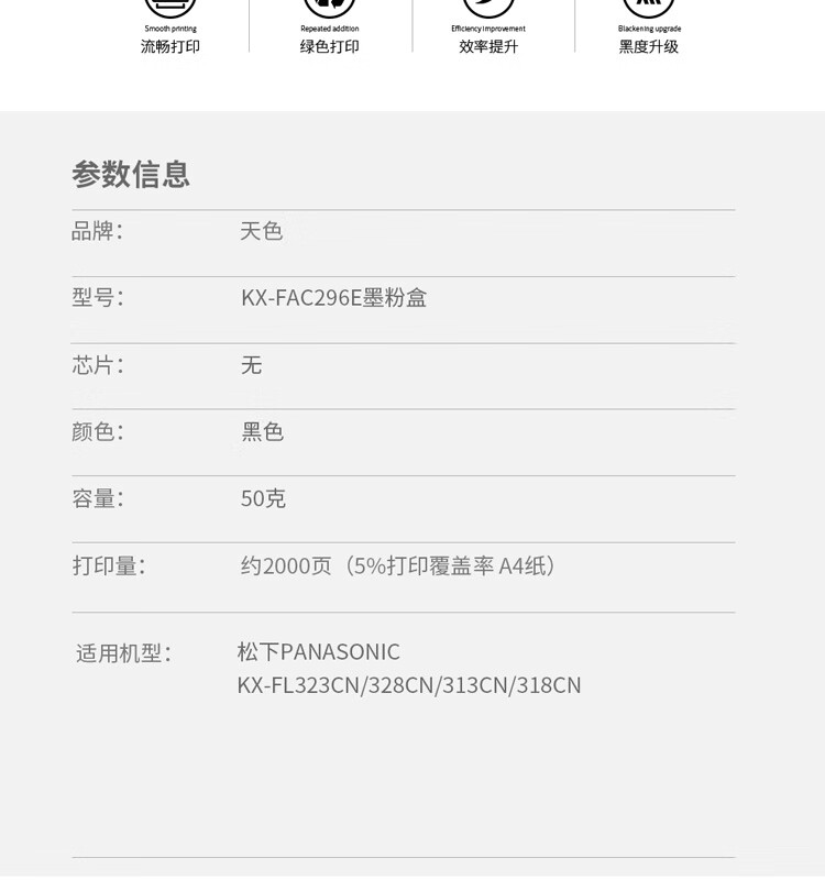 > 办公耗材 复印纸 硒鼓 > 打印耗材 > 硒鼓 > 天色 粉盒 FAC290E (适用于 PanasonicKX-FL323CN/328CN/313CN/318CN)阳光旗舰版| 产品名称 : | 天色 粉盒 FAC290E (适用于 PanasonicKX-FL323CN/328CN/313CN/318CN)阳光旗舰版 |