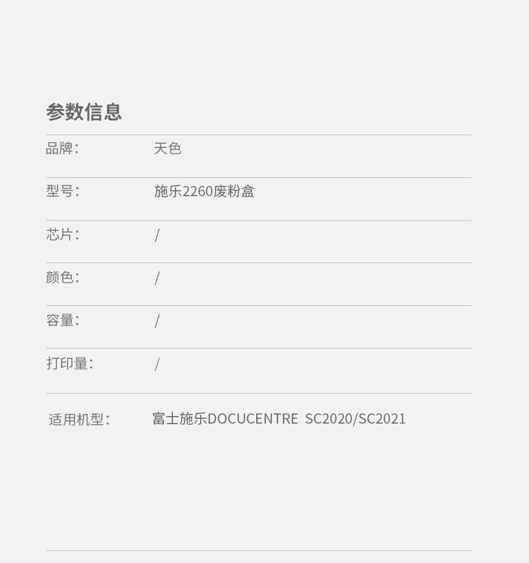 | 产品名称 : | 天色 废粉盒 施乐2260 五代(适用于 Xerox CWAA0885 C2260/C2263/C2265)阳光旗舰版 Z |