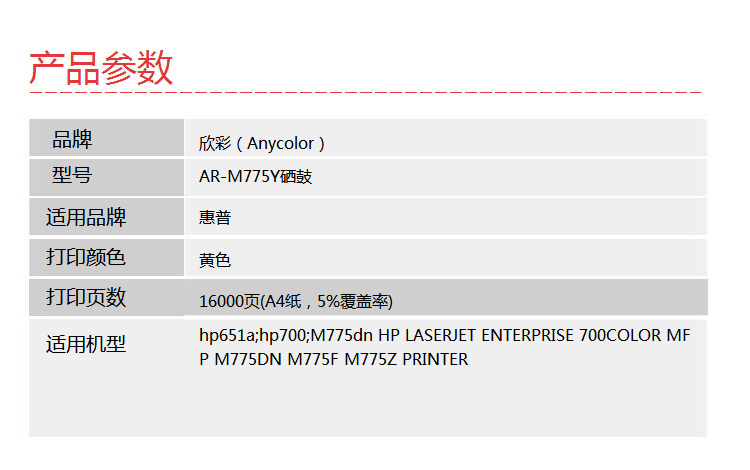 > 办公耗材 复印纸 硒鼓 > 打印耗材 > 硒鼓 > 欣彩(Anycolor)CE342A硒鼓(专业版)651A黄色 AR-M775Y 适用惠普HP M775 M775dn M775f M775z HP651A| 产品名称 : | 欣彩(Anycolor)CE342A硒鼓(专业版)651A黄色 AR-M775Y 适用惠普HP M775 M775dn M775f M775z HP651A |