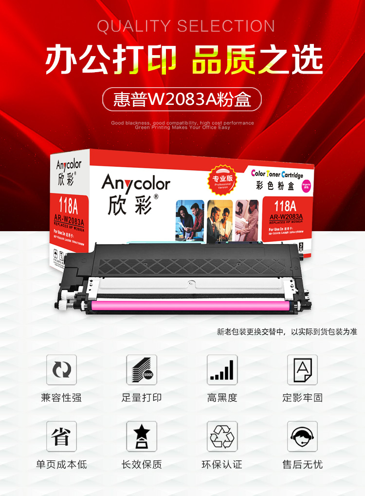 产品名称 : 欣彩 W2083A粉盒 专业版 AR-W2083A红色 118A带芯片 适用惠普HP Color Laser 150a 150nw MFP 178nw 179fnw