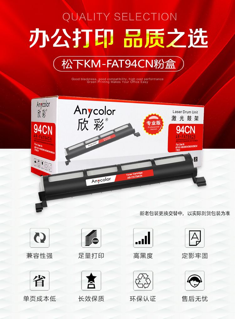 > 办公耗材 复印纸 硒鼓 > 打印耗材 > 硒鼓 > 欣彩(Anycolor)KM-FAT94CN粉盒(专业版)AR-94CN墨粉筒 适用松下KX-MB228CN 238CN 258CN 778CN| 产品名称 : | 欣彩(Anycolor)KM-FAT94CN粉盒(专业版)AR-94CN墨粉筒 适用松下KX-MB228CN 238CN 258CN 778CN |