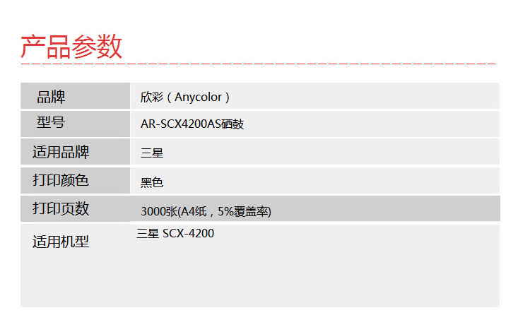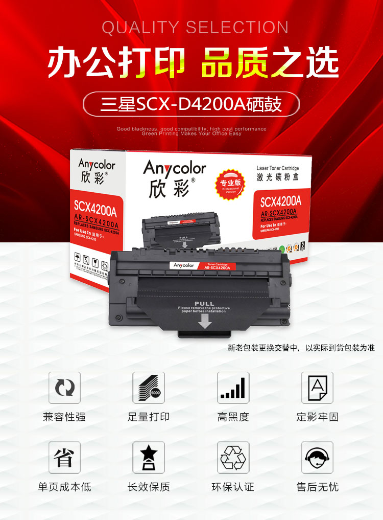 | 产品名称 : | 欣彩(Anycolor)SCX-D4200A硒鼓(专业版) AR-SCX4200AS 适用三星 SCX-4200 打印机 |