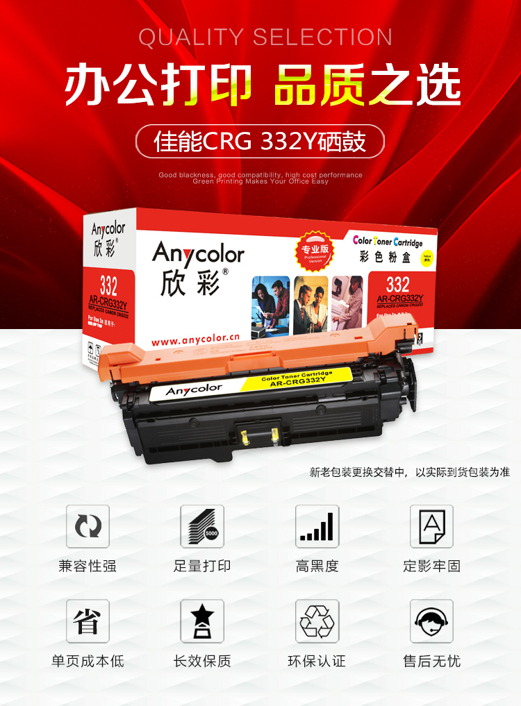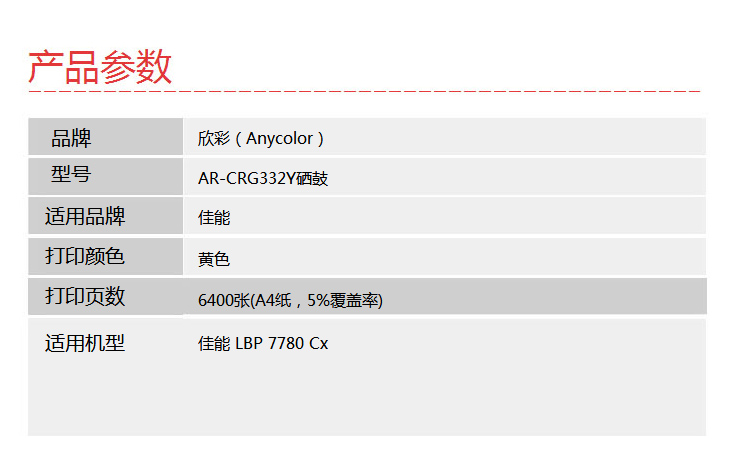 > 办公耗材 复印纸 硒鼓 > 打印耗材 > 硒鼓 > 欣彩(Anycolor)332Y硒鼓(专业版)AR-CRG332Y黄色 适用佳能CRG-332Y LBP 7780 Cx 打印机| 产品名称 : | 欣彩(Anycolor)332Y硒鼓(专业版)AR-CRG332Y黄色 适用佳能CRG-332Y LBP 7780 Cx 打印机 |