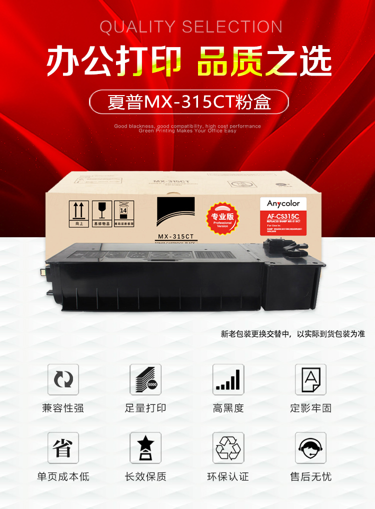 > 办公耗材 复印纸 硒鼓 > 打印耗材 > 硒鼓 > 欣彩 MX-315CT墨粉盒 专业版 AF-CS315C 适用夏普Sharp M2658U M3158U M2658N M3158N 2658 复印机| 产品名称 : | 欣彩 MX-315CT墨粉盒 专业版 AF-CS315C 适用夏普Sharp M2658U M3158U M2658N M3158N 2658 复印机 |
