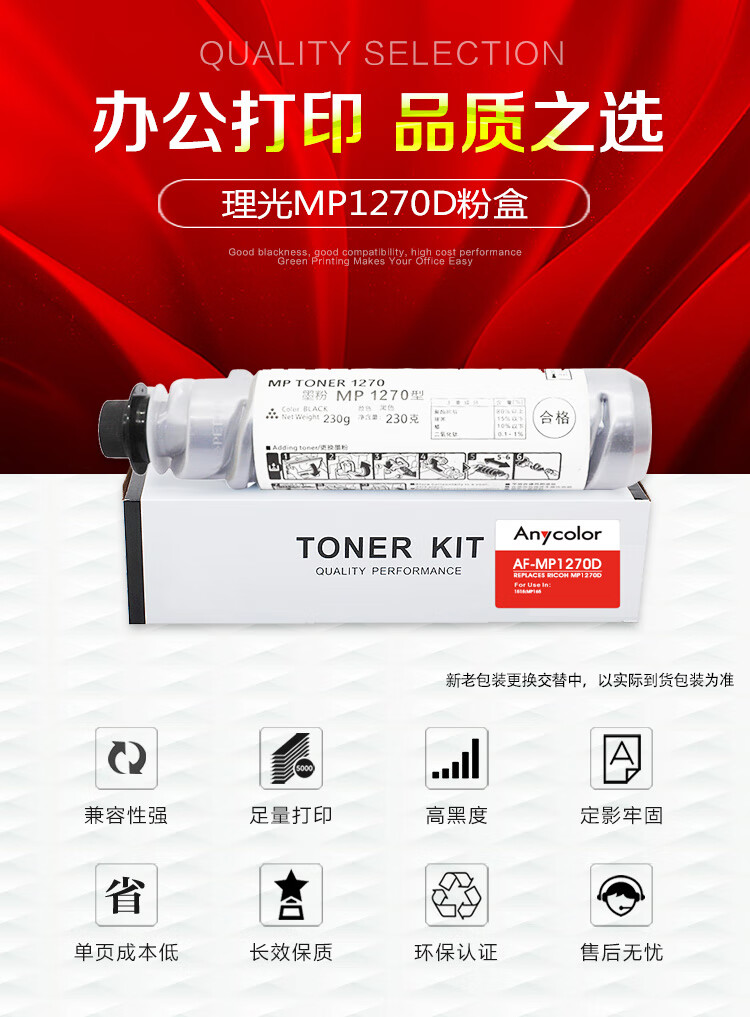 产品名称 : 欣彩(Anycolor) MP1270D粉盒 AF-MP1270D墨粉盒 适用理光 1515 MP165 复印机墨粉筒