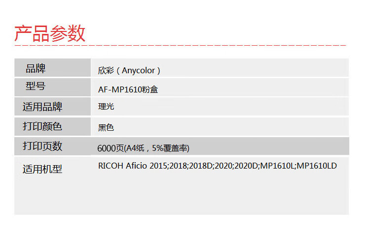 > 办公耗材 复印纸 硒鼓 > 打印耗材 > 硒鼓 > 欣彩(Anycolor) MP1610/1230D粉盒 专业版 AF-MP1610复印机粉筒 适用理光2015 2018 2018D 2020 MP1610L LD| 产品名称 : | 欣彩(Anycolor) MP1610/1230D粉盒 专业版 AF-MP1610复印机粉筒 适用理光2015 2018 2018D 2020 MP1610L LD |