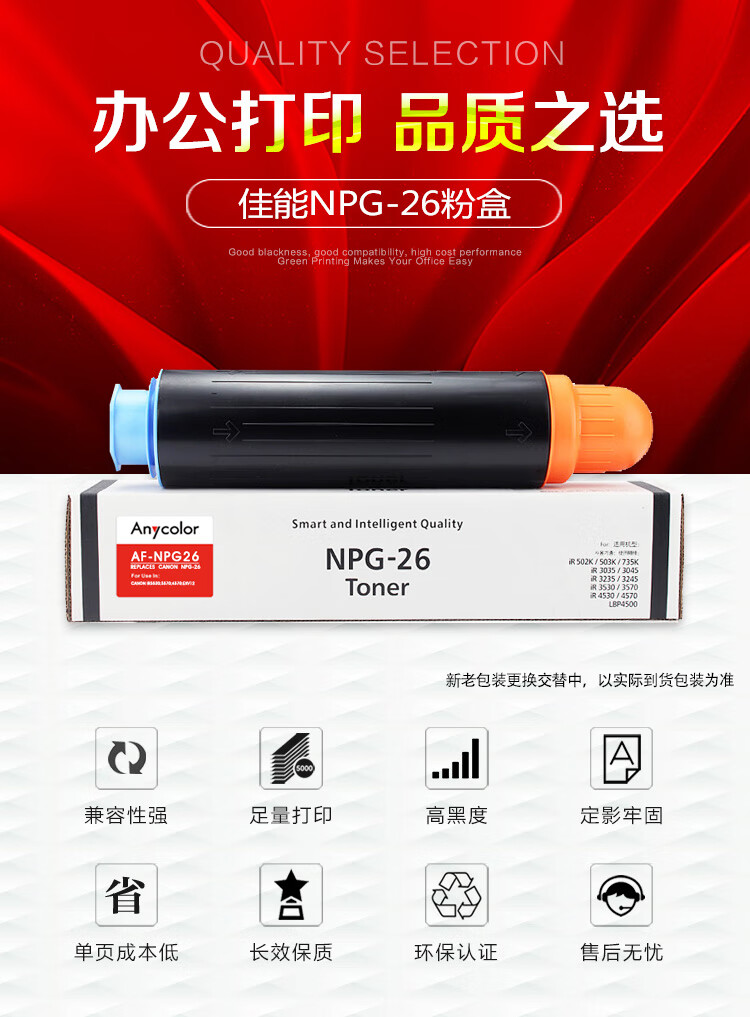 > 办公耗材 复印纸 硒鼓 > 打印耗材 > 硒鼓 > 欣彩(Anycolor)NPG-26墨粉盒 AF-NPG26 适用佳能Canon IR3530 3570 4570 EXV12 复印机碳粉| 产品名称 : | 欣彩(Anycolor)NPG-26墨粉盒 AF-NPG26 适用佳能Canon IR3530 3570 4570 EXV12 复印机碳粉 |