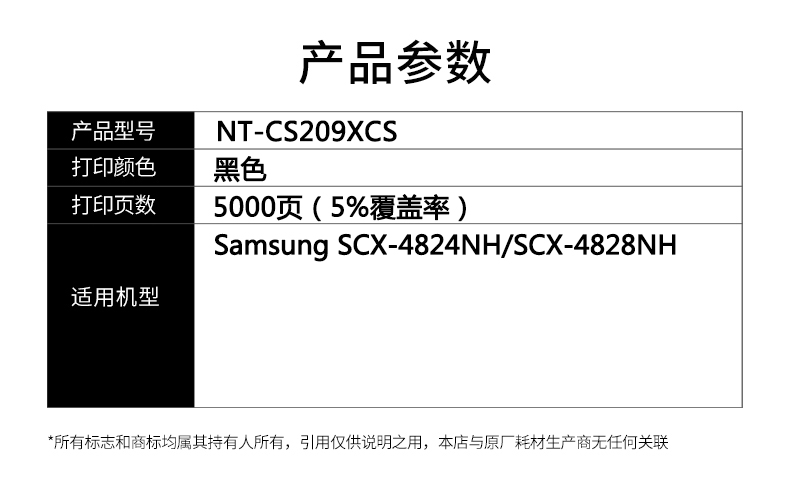 | 产品名称 : | 欣格 MLT-D209 碳粉盒 NT-CS209XCS 适用三星 SCX-4824NH SCX-4828NH 打印机 |