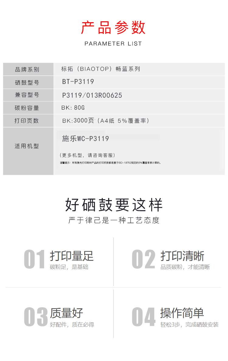| 产品名称 : | 标拓 (Biaotop) P3119硒鼓适用施乐 Xerox P3119打印机 畅蓝系列 |
